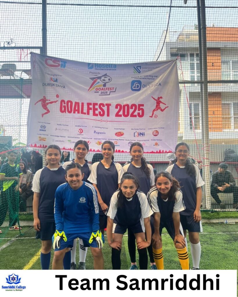 Samriddhi College was delighted to have representation at Goal Fest 2025, the much-anticipated futsal tournament organized by the CSIT Association of Nepal. The event, billed as the ultimate “futsal battle,” was held from March 11 to 15 at Royal Nepal Futsal, Bhaktapur—bringing together talented students from across the country in a spirited competition.
