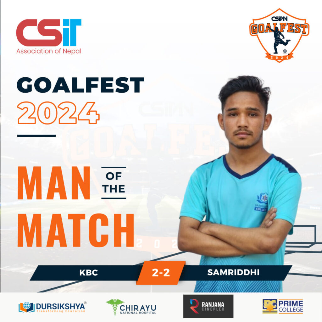 On 8th April, our team faced Team KBC, delivering an impressive performance that ended in a 2–2 draw. In recognition of his outstanding play, Sandesh Karki was awarded the title of Man of the Match, a proud achievement for our college.