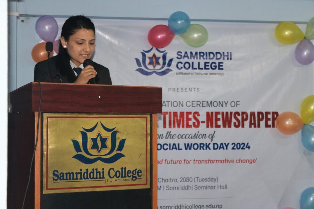 Samriddhi College proudly inaugurated its first neighbourhood newspaper, “Samriddhi Times”, on the occasion of Social Work Day. Under the theme ‘Buen Vivir: Shared Future for Transformative Change’, the Department of Social Work, together with administrative departments, students, faculty, and community members, worked with dedication to bring this project to life.