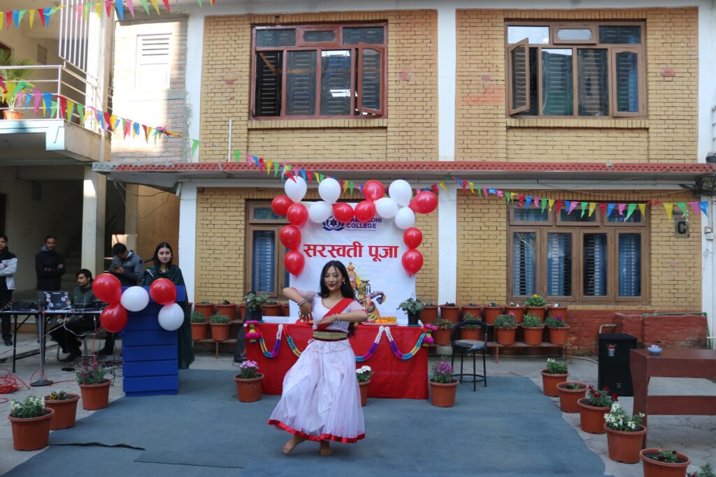 The Samriddhi Cultural Club organized a heartfelt celebration of Saraswati Puja 2081, honoring Goddess Saraswati, the divine embodiment of wisdom, learning, and knowledge. Students, faculty, and staff gathered together in devotion, offering prayers for enlightenment, creativity, and academic success.